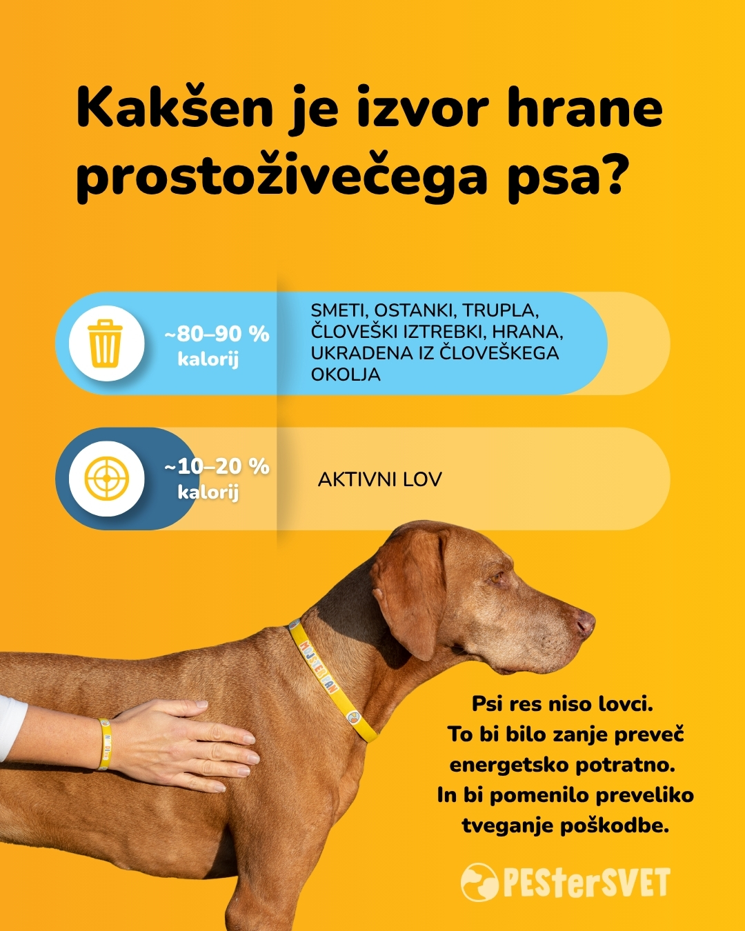 Empirično imamo podatke, da okoli 80–90 % vnosa energije prostoživečih psov pride iz “smetiščarskega nabiralništva” (človeški odpadki, trupla, fekalije), ne iz lova.